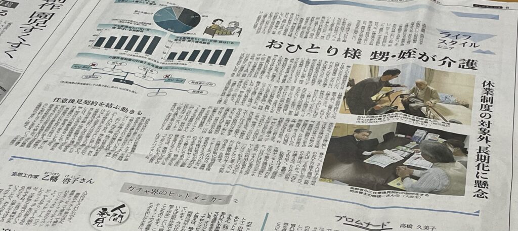 日本経済新聞夕刊に『おひとり様の介護、甥・姪も担う 休業制度の対象外など課題も』が掲載されました。